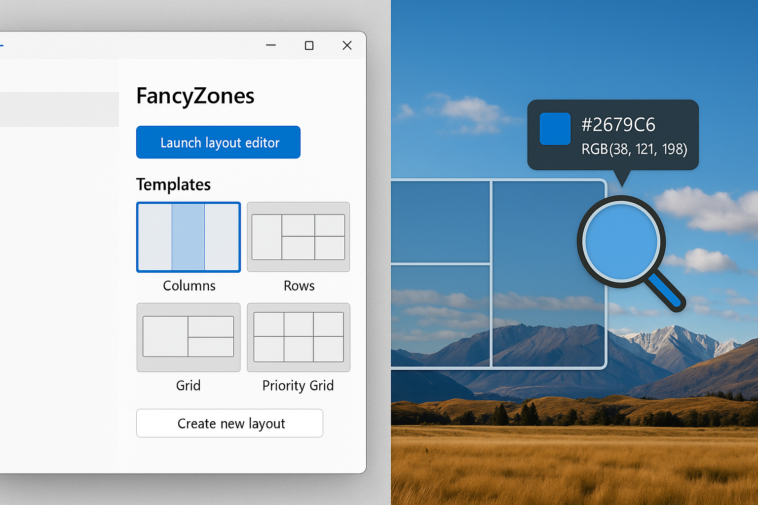 9. FancyZones: создание собственных макетов рабочего стола