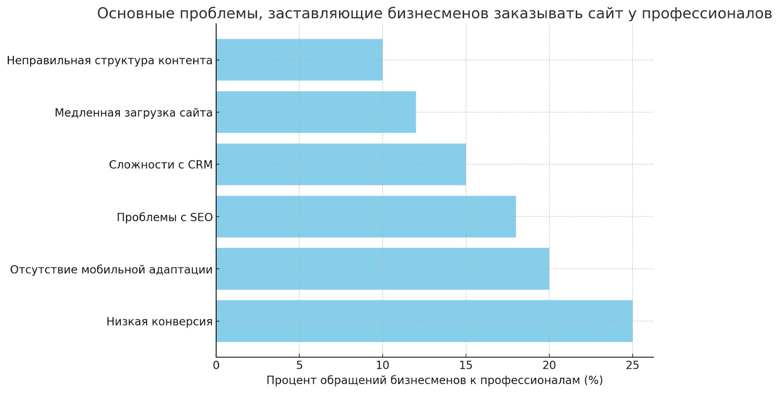 Вот диаграмма о проблемах при заказе сайта в Москве: